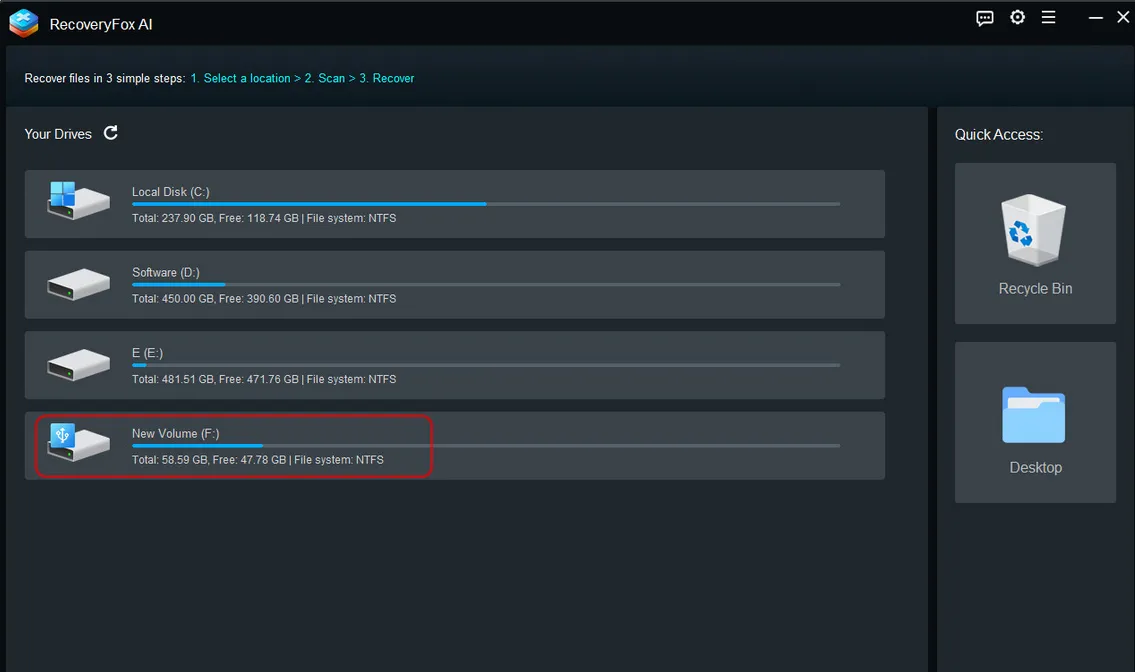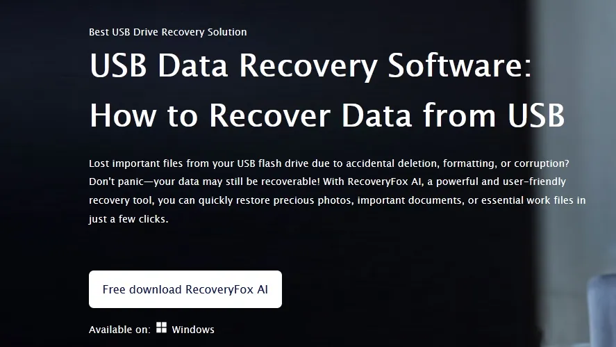 When my USB drive failed last week, I tested multiple recovery tools. RecoveryFox AI stood out for its speed, accuracy, and user-friendly design. Here’s why I recommend it and how to use it: