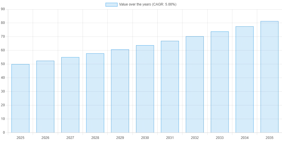 The Techgolly market research team’s preliminary estimate is that the global nuclear power plant market was valued at USD 50 billion or more in 2025 and is projected to reach USD 81.4 billion by 2035. The growth will continue at a compound annual growth rate (CAGR) of 3% to 5% from 2025 to 2035.